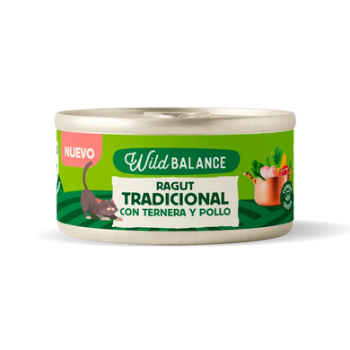 Lata de ragut tradicional de ternera, cerdo y pollo para gatos - Wild Balance